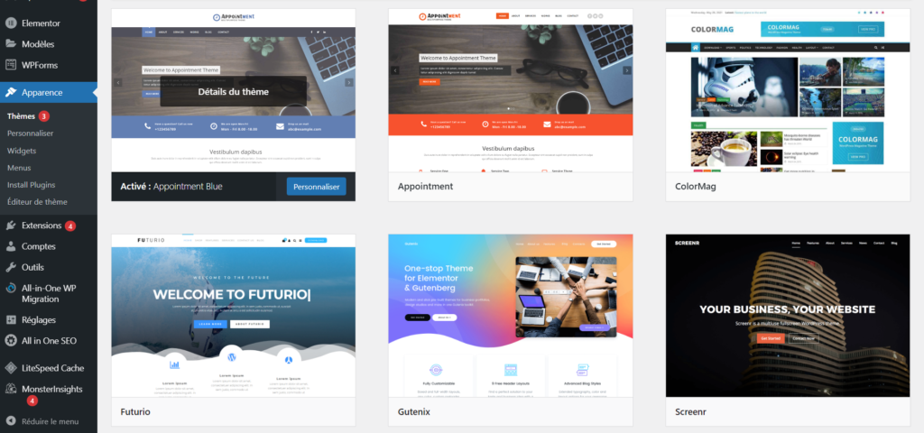 Le choix du thème est primordial, cela permet d’obtenir une première structure du site.