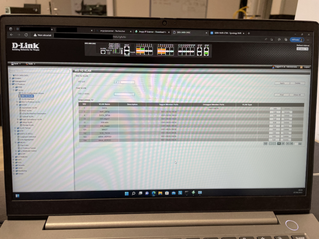 Sur un switch uniquement consacré à la vidéosurveillance création depuis l’interface graphique de celui-ci d’un vlan nommé Cam_Video en le configurant sur l’entièreté des ports de ce dernier.