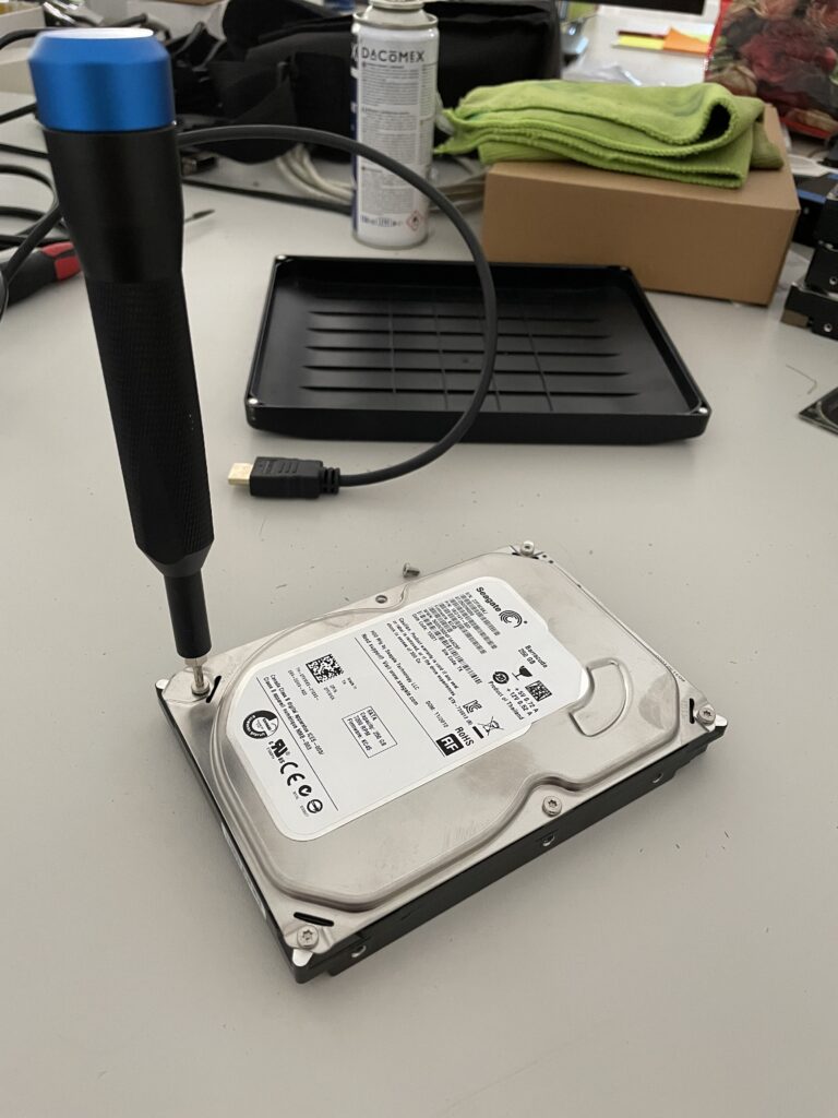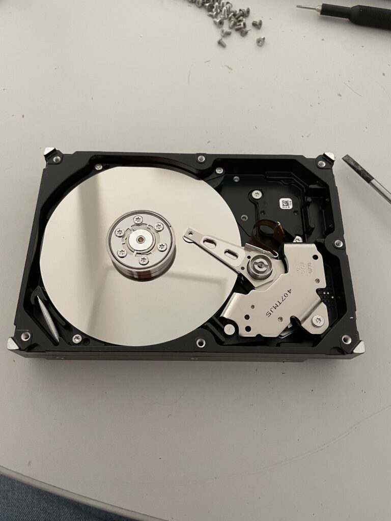 Après-midi démontage de disque dur HDD voué à la destruction afin de récupérer les plateaux mais surtout les aimants pouvant servir à magnétiser des tournevis.