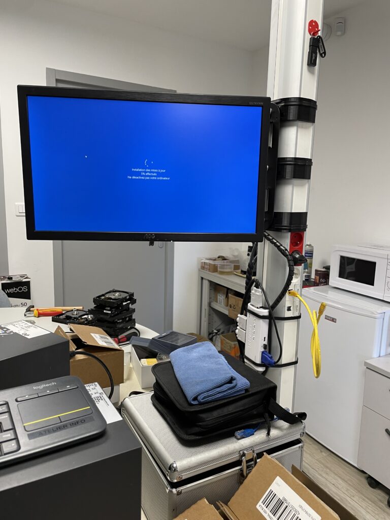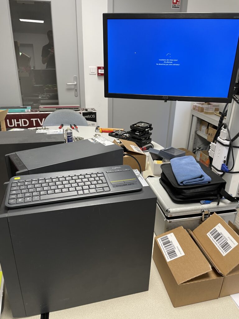 Test de toutes les tours PC disponible dans le SI afin de vérifier à la fois le bon fonctionnement mais aussi d’effectuer toutes les mises à jour nécessaires. Mission prenant toute la journée étant donnée la durée des mises à jour.
