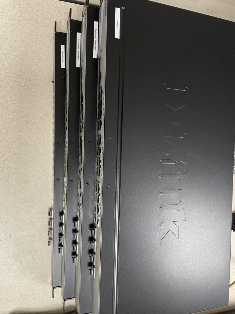 Préparation de 4 switchs pour un futur déploiement dans les écoles Henri Michel, Carbonnel Maternelle, Carbonnel Elémentaire et la crèche.